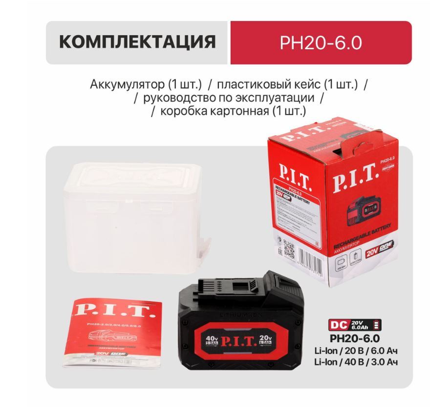 ЕАС Аккумулятор PH20-6.0 (20В, 6Ач, Li-Ion) P.I.T