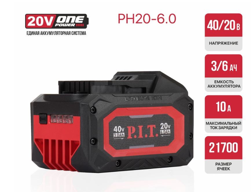 Применение: для использования с аккумуляторными инструментами P.I.T. серии OnePower напряжением 20 В и 40 В.