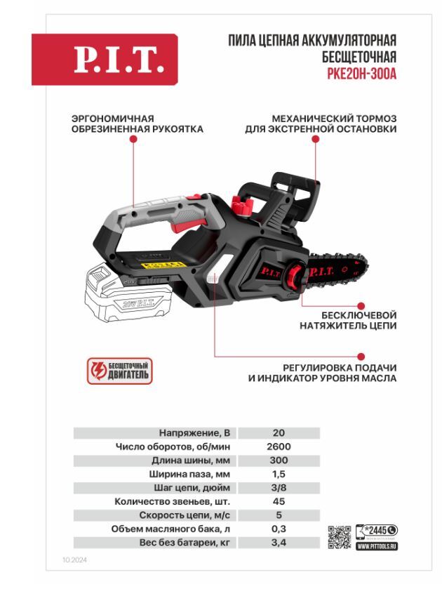 Цепная аккумуляторная пила PKE20H-300A входит в семейство инструментов единой аккумуляторной системы OnePower. К инструменту подходят все аккумуляторы семейства OnePower20V.
