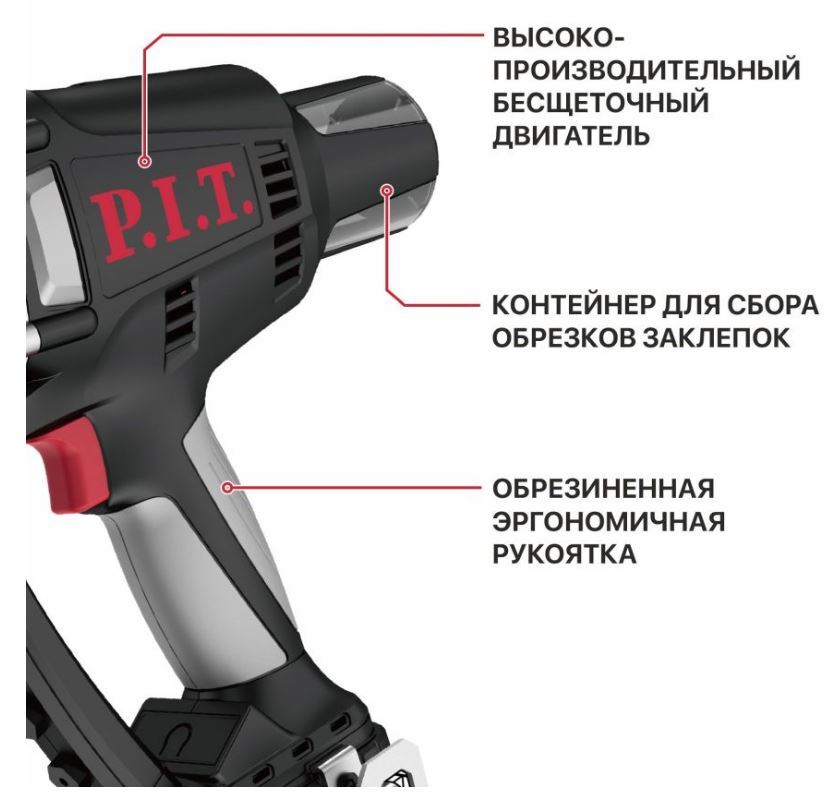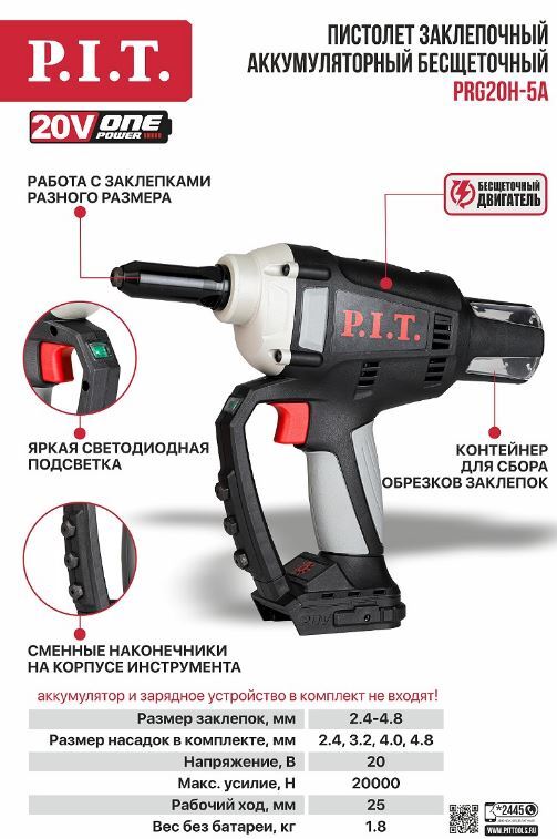 Пистолет заклепочный аккумуляторный PRG20H-5A предназначен для установки алюминиевых или стальных вытяжных заклепок и получения неразъемных соединений.