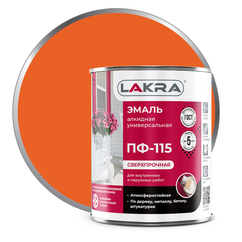 Высококачественная эмаль Лакра ПФ-115 на основе алкидного лака. Обладает хорошими декоративными свойствами, укрывистостью и прочным сцеплением с окрашиваемой поверхностью. Легко наносится, образуя однородное гладкое покрытие, устойчивое к действию воды, атмосферных осадков и растворов моющих средств. Эмаль готова к применению.