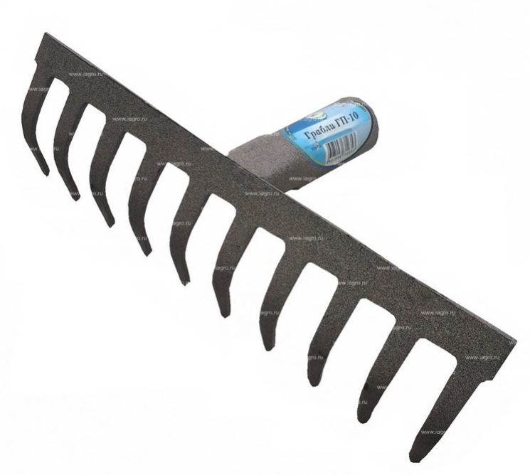 Без черенка, порошковая окраска, толщина зуба (S=3mm), диаметр тулейки 30мм, материал - сталь, тип зубьев - прямые, кол-во зубьев - 10. Назначение: подходят для работы на садовом участке для сбора сухой листвы, срезанных веток и других работ. Зубья имеют прямую форму, что позволяет с удобством убирать мусор.