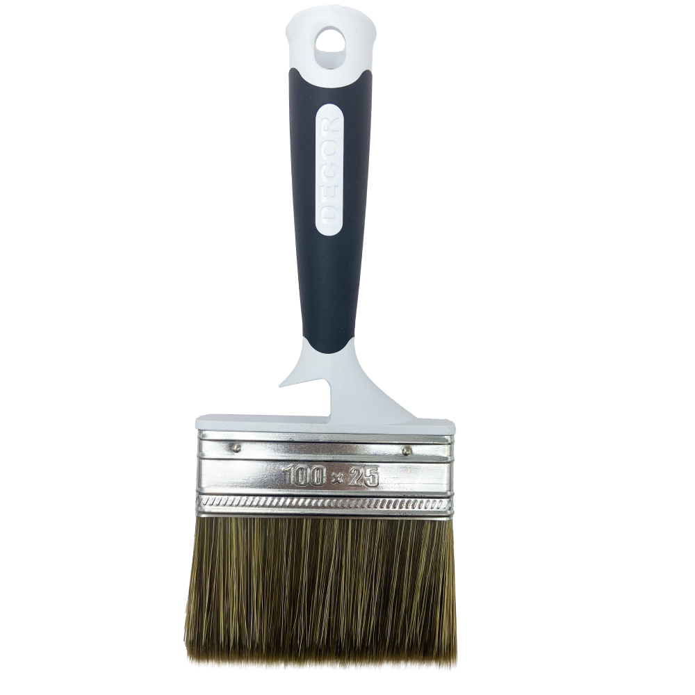 Кисть плоская Для финишных работ 100мм*25мм тёмный, синтет. ворс, 2К ручка/830-105