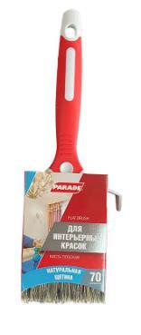 Кисть плоская PARADE 50мм ДЛЯ ИНТЕР. КРАСОК натур. свет. и чёр. щет, 2-х к. руч. (Лакра) 7104002