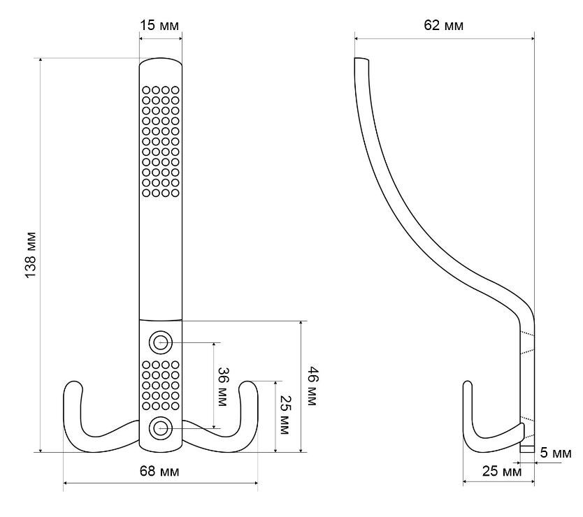 Крючок-вешалка трёхрожковый. Материал - алюминиевый сплав. Крепеж в комплекте.