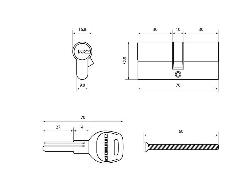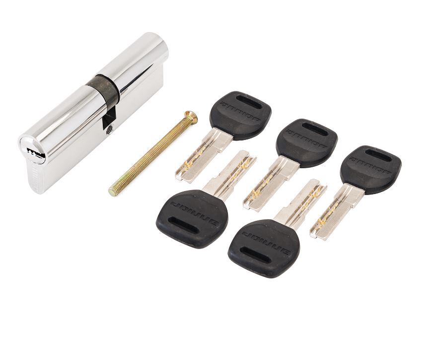 Механизм цилиндровый для врезных замков с 6 пинами секретности. Европрофиль. Перфо-ключ. Материал корпуса и ротора – латунь. Ключ-латунный, с эргономичной пластиковой головкой. Ключ-ключ. Длина механизма - 70 мм (30х10х30). 45000 секретных комбинаций ключа. Механизм защищен от высверливания, вскрытия бампингом и отмычками. Выступающий на 30 градусов из плоскости механизма кулачок защищает цилиндр от выбивания из двери.