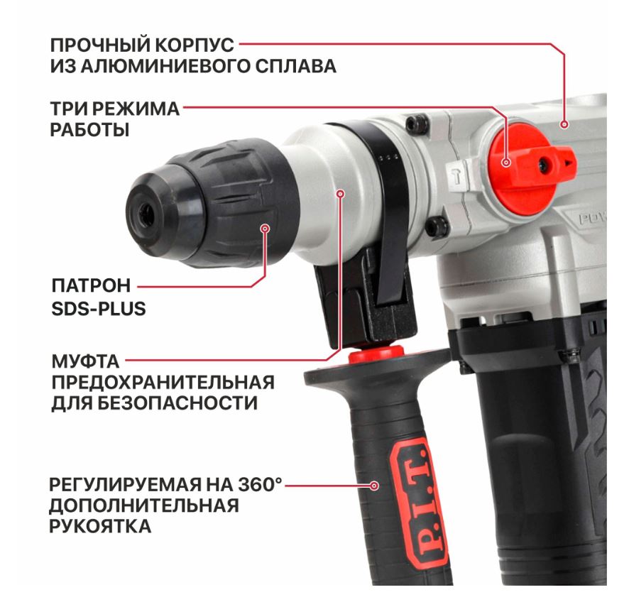 Трёхрежимный перфоратор SDS-Plus PBH28-C6 с вертикальным расположением двигателя для сверления различных материалов и лёгких долбёжных работ.