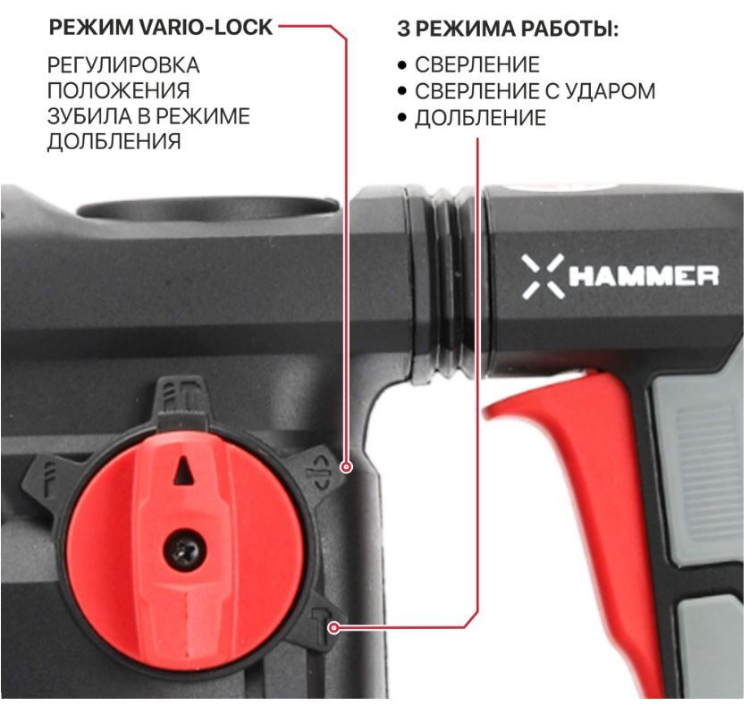 Три режима работы: сверление, сверление с ударом, долбление.