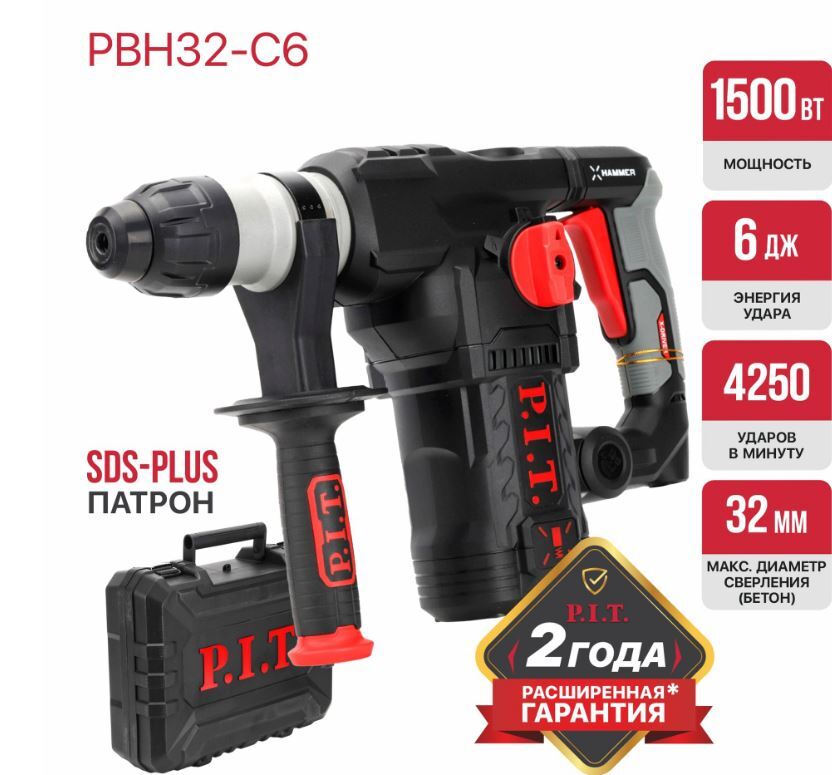Мощный и производительный перфоратор SDS-Plus PBH32-C6 отлично подойдет для работ с различными материалами. Перфоратор имеет три режима работы: сверление, сверление с ударом и долбление, что позволяет использовать его для бурения отверстий в бетоне, кирпиче, каменной кладке, а также для долбления в этих материалах и сверления в дереве или металле.