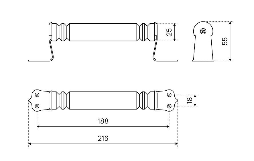 Ручка-скоба для деревянных дверей. Материал ручки - полированное дерево, материал креплений - сталь с полимерным покрытием. , размеры ручки - 215х35х53 мм. Крепеж в комплект не входит.