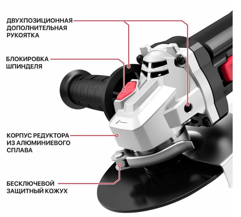 Регулируемый без ключа защитный кожух и двухпозиционная боковая рукоятка позволяют быстро настроить инструмент для выполнения различных работ. Блокировка шпинделя обеспечит быструю смену оснастки.